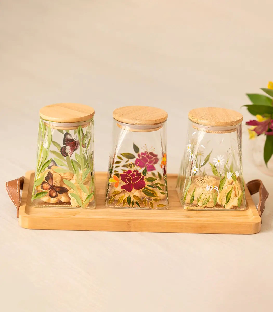Cada peça é uma expressão artística que traz um toque de natureza e leveza à sua cozinha. As delicadas ilustrações tornam cada pote uma bela decoração, perfeita para qualquer ambiente.